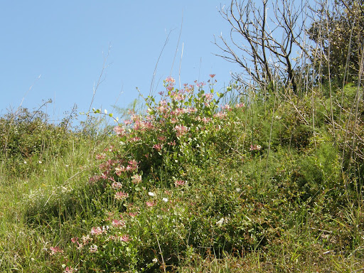 En Punta Lucero he contado, aproximadamente, una treintena de plantas de madreselva etrusca pero siempre muy dispersas y también las he visto en Montaño, Pico Kardeo y Serantes; pero en estos tres no es muy abundante. No las he visto por Moreo, ni El Peñón.