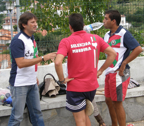 Lo hemos pasado bien esta tarde, y hemos tenido la presencia de pelotaris como Loureiro, Oskar Medina, Ferrero, etc... También hemos visto a Juanjo, el concejal d la Izquierda Abertzale de Zierbena, a Javi Mora de Mamariga, a Bingen, y a unos cuantos chavales del barrio. Y un ilustre veterano que ha venido a saludarnos: Juliantxi Artetxe.