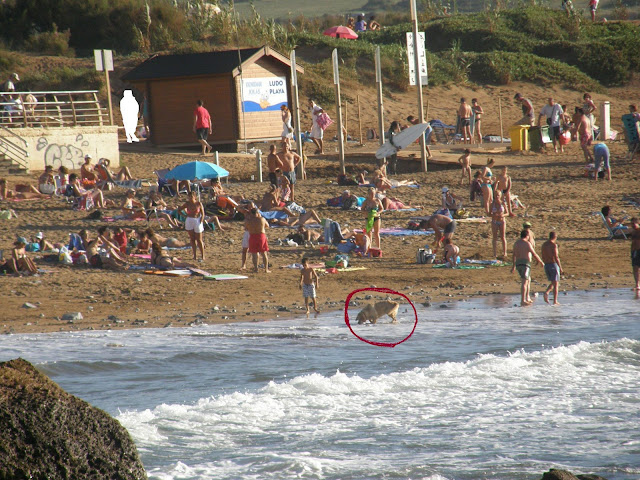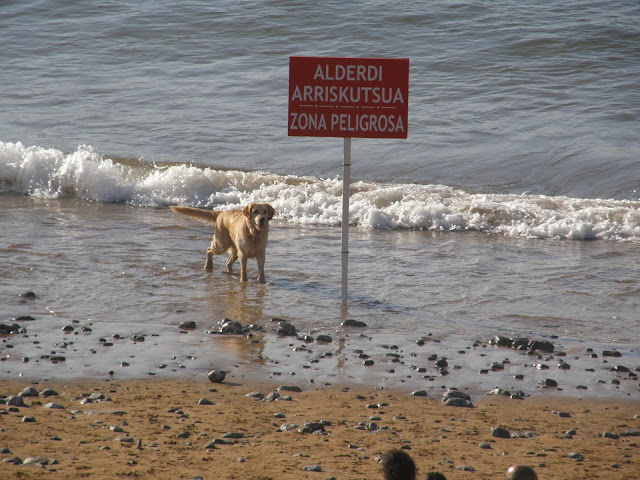No pongo este post del perro para criticar a los hondartzainas; además, me consta que las que hoy estaban de servicio han tratado de hacer algo por la presencia del perro, que además de bañarse, y escarbar, ladraba bastante con lo que delataba su presencia. Yo mismo las he visto llamando por teléfono pero me sospecho que no les han hecho caso. Lo que no sé es a quién llamaban, aunque es de suponer que al alguacil de servicio, al Policía Municipal o a la Ertzaintza.
