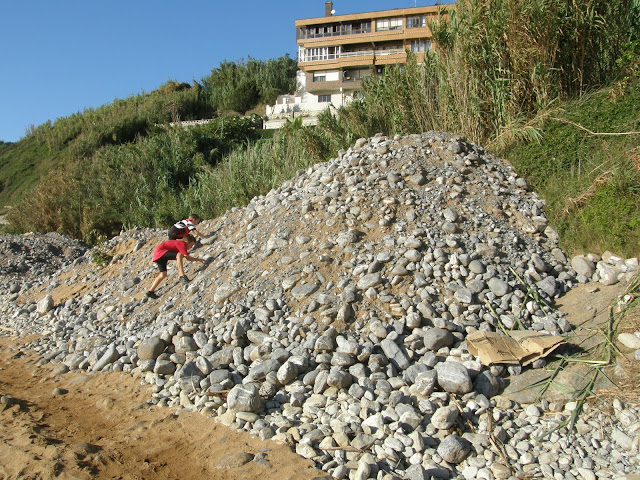 O a lo mejor ha pensado que si las piedras invaden la playa, ¿qué importa que un perro se dé un bañito?. Si os fijáis en esta última foto, hay un muñeco blanco junto a la ludoteca, era una hondartzaina.